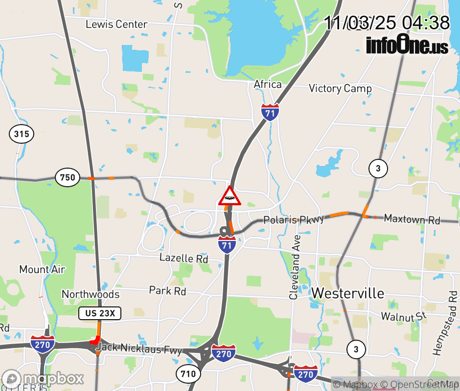 Ramp to Gemini Place To Polaris Pkwy from I-71 South is closed due to crash. ![]()  |
