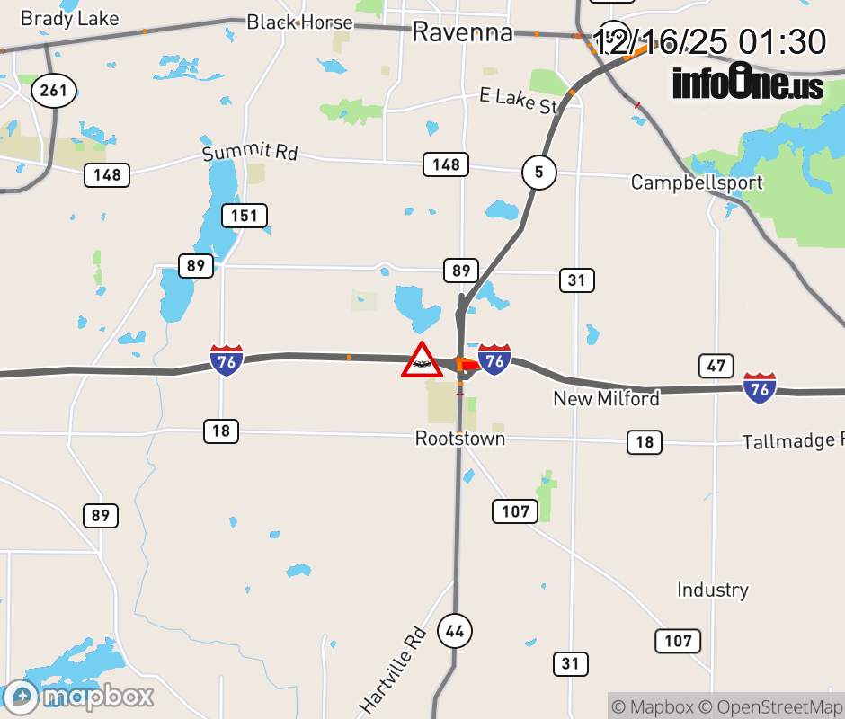 All lanes are closed on I-76 West beyond SR-5/SR-44, due to a crash. ![]() |