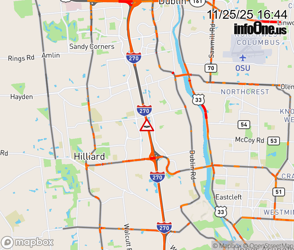 The left shoulder is blocked on I-270 South beyond Tuttle Crossing Blvd, due to a crash. ![]() |
