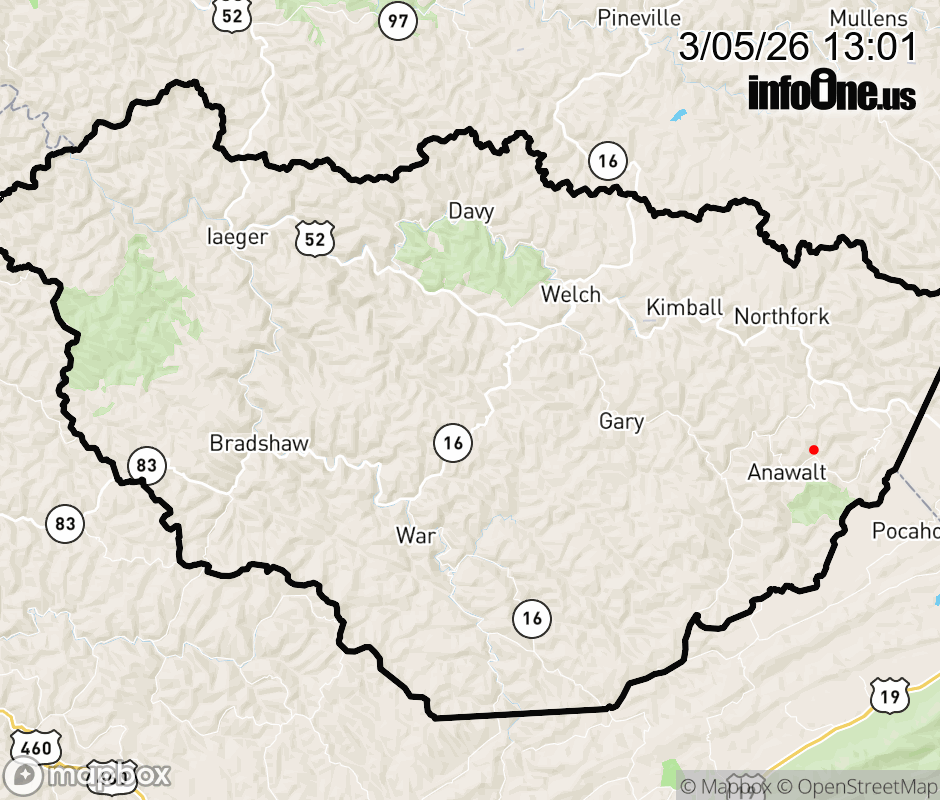 Canceled 3/5/26 1:30 PM McDowell County has 1 power outage affecting 4 customers. Appalachian Power 4 without power Anawalt: Customers affected: <5 (2%) Estimated repair: Thu 5:30 PM Welch: Customers affected: <5 (< 1%) Estimated repair: Thu 6:00 PM Updated: Thu 3/5/26 1:01 PM EST ![]() Updated: Thu 3/5/26 1:01 PM EST |