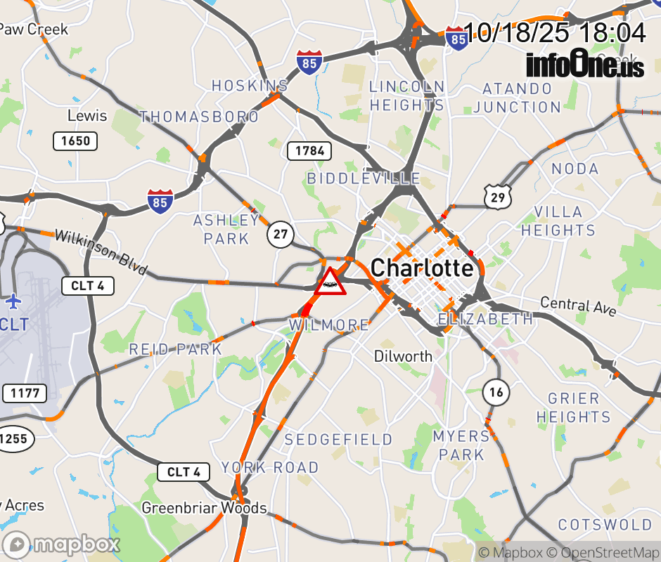 The right shoulder is closed near Exit 9 (I-277). Updated: Sat 10/18/25 6:04 PM EDT ![]() Updated: Sat 10/18/25 6:04 PM EDT |