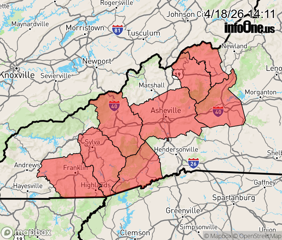 Canceled 4/19/26 1:41 AM Wind Advisory issued April 18 at 2:10PM EDT until April 19 at 2:00PM EDT by NWS Greenville-Spartanburg SC * WHAT... Northwest winds 20 to 30 mph with gusts up to 50 mph expected above 3500 feet. * WHERE... Buncombe, Haywood, Macon, McDowell Mountains, Mitchell, Northern Jackson, Southern Jackson, Transylvania, and Yancey Counties. * WHEN... From 6 AM to 2 PM EDT Sunday. * IMPACTS... Gusty winds will blow around unsecured objects. Tree limbs could be blown down and a few power outages may result. ![]() |