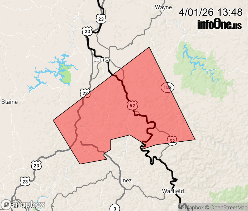 Canceled 4/1/26 2:02 PM Severe Thunderstorm Warning issued April 1 at 1:47PM EDT until April 1 at 2:15PM EDT by NWS Charleston WV SVRRLX The National Weather Service in Charleston West Virginia has issued a * Severe Thunderstorm Warning for... Southeastern Lawrence County in northeastern Kentucky... Southwestern Wayne County in western West Virginia... * Until 215 PM EDT. * At 147 PM EDT, a severe thunderstorm was located near Ulysses, or 8 miles northwest of Inez, moving east at 20 mph. HAZARD...60 mph wind gusts and penny size hail. SOURCE...Radar indicated. IMPACT...Expect damage to roofs, siding, and trees. * Locations impacted include... Dunlow, Ulysses, Charley, Clifford, Glenhayes, and Gallup. ![]() |
