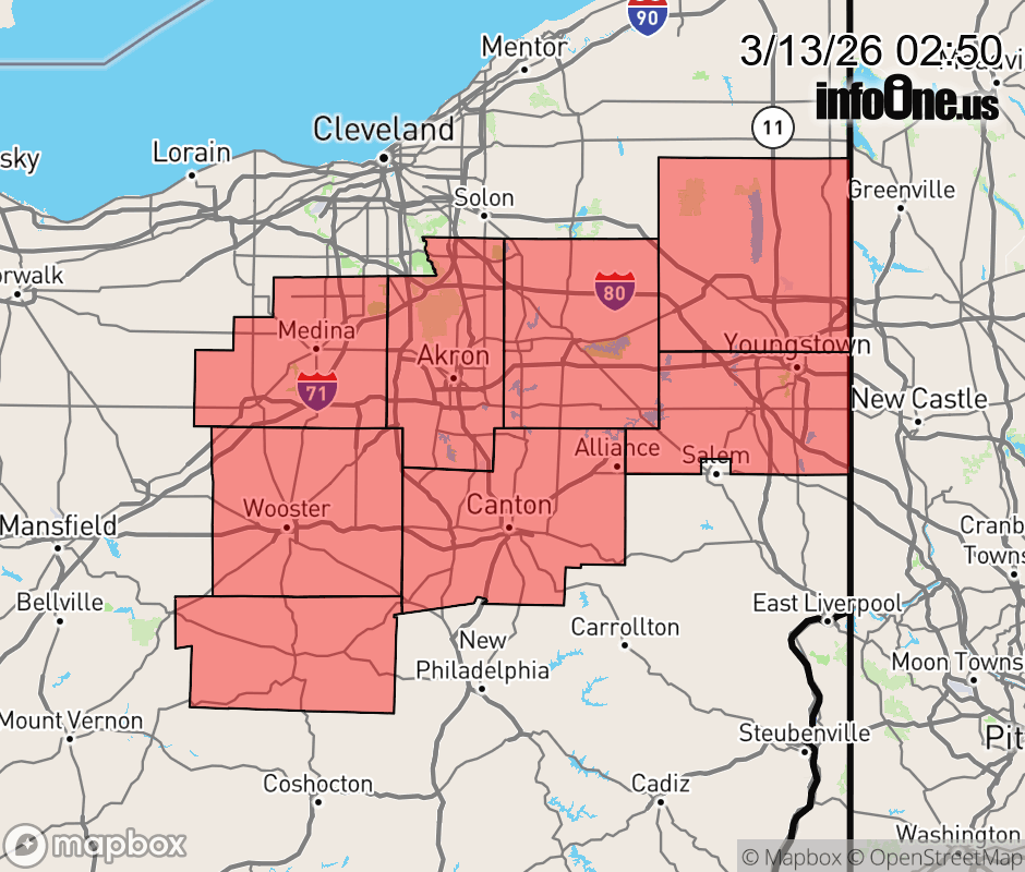 Canceled 3/13/26 9:50 AM High Wind Warning issued March 13 at 2:49AM EDT until March 13 at 8:00PM EDT by NWS Cleveland OH * WHAT... Southwest winds 25 to 35 mph with gusts up to 60 mph expected. * WHERE... Holmes, Mahoning, Medina, Portage, Stark, Summit, Trumbull, and Wayne Counties. * WHEN... From 8 AM this morning to 8 PM EDT this evening. * IMPACTS... Damaging winds will blow down trees and power lines. Widespread power outages are expected. Travel will be difficult, especially for high profile vehicles. ![]() |