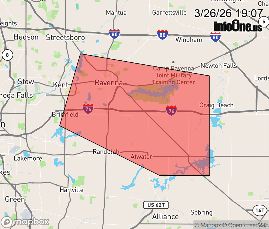Canceled 3/26/26 7:17 PM Severe Thunderstorm Warning issued March 26 at 7:06PM EDT until March 26 at 7:45PM EDT by NWS Cleveland OH SVRCLE The National Weather Service in Cleveland has issued a * Severe Thunderstorm Warning for... Southern Portage County in northeastern Ohio... * Until 745 PM EDT. * At 705 PM EDT, a severe thunderstorm was located near Ravenna, moving east at 60 mph. HAZARD...60 mph wind gusts and quarter size hail. SOURCE...Radar indicated. IMPACT...Minor damage to vehicles is possible. Expect damage to trees and power lines. * Locations impacted include... Ravenna, Kent, Streetsboro, Brimfield, Atwater, Edinburg, Deerfield, Brady Lake, and Wayland. ![]() |