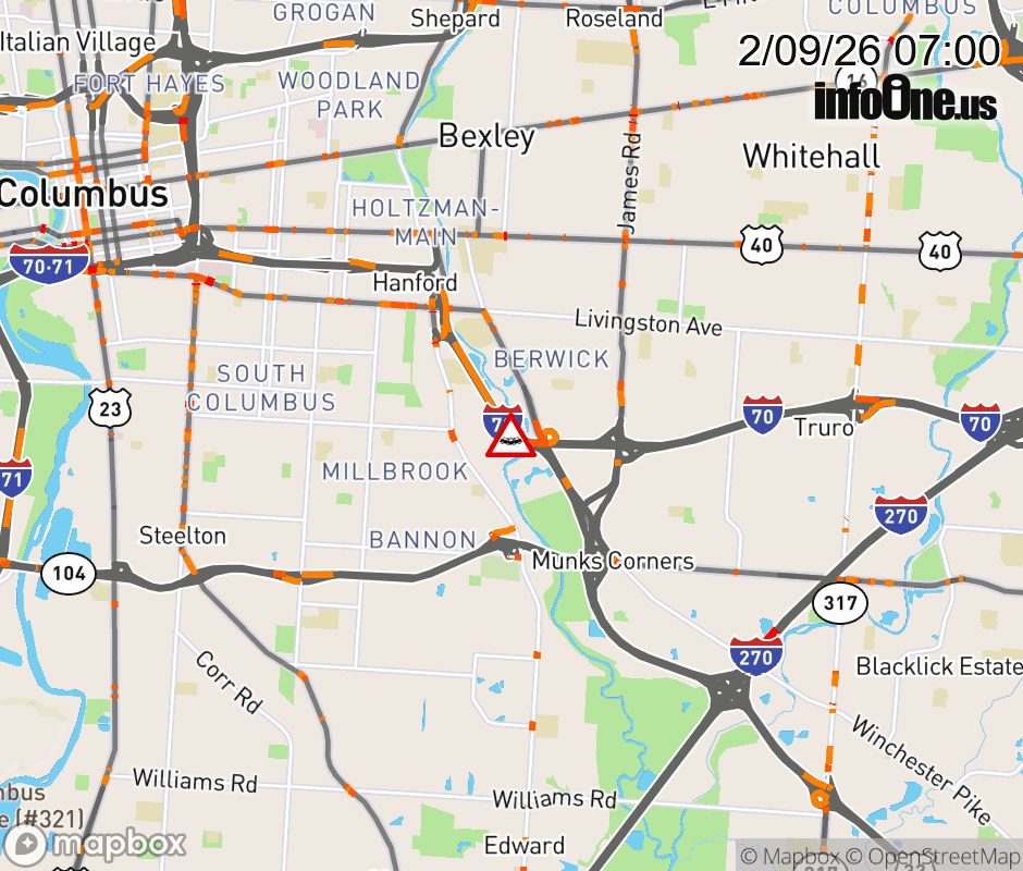 Canceled 2/9/26 7:14 AM Location: I-70 East at MM 104.5, OH Accident.