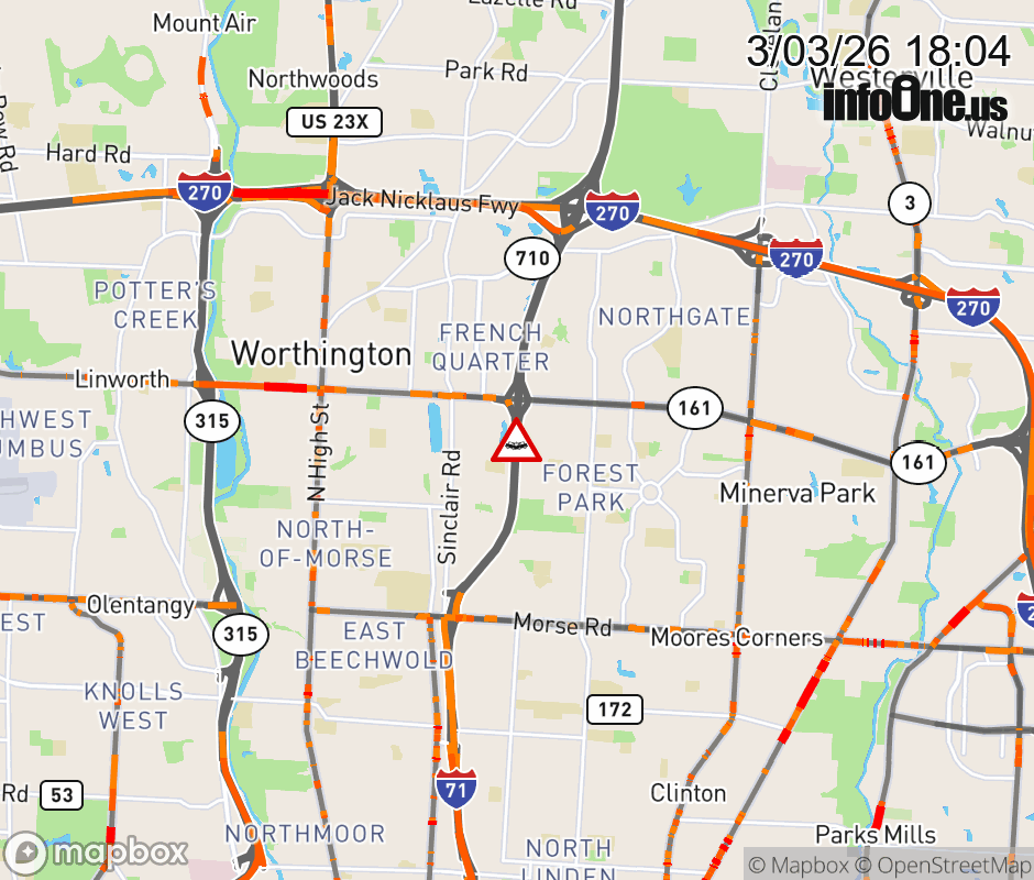 The right shoulder is blocked on I-71 North at SR-161/Dublin Granville Rd, due to a crash. ![]() |