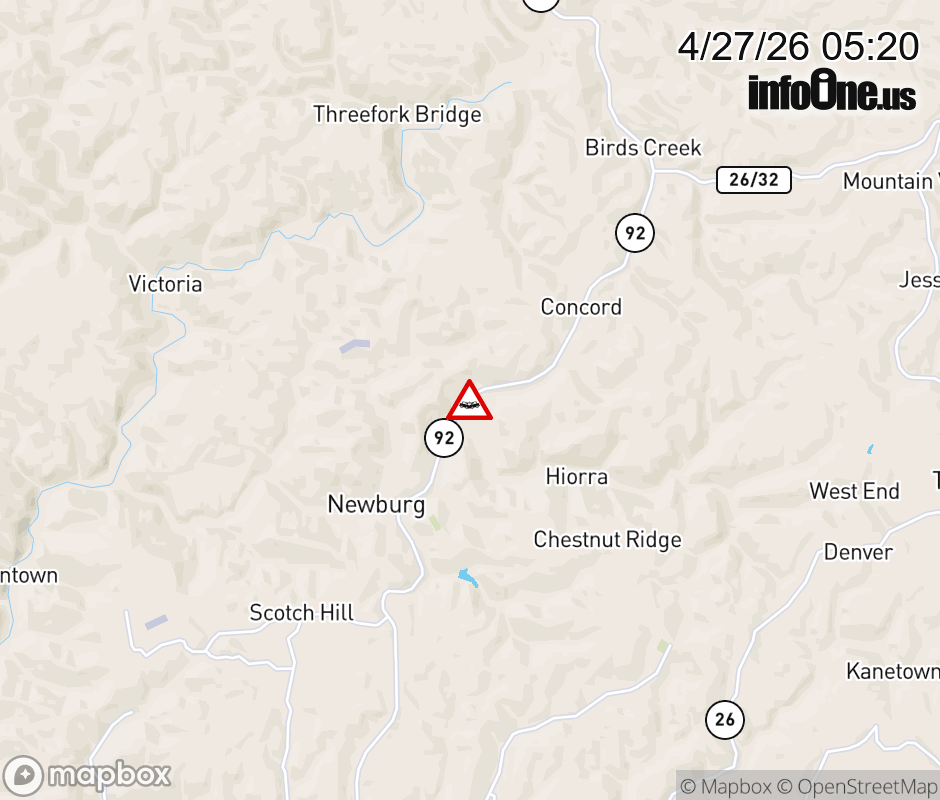 Canceled 4/27/26 6:54 AM Location: WV-92 at MM 8.75, WV Accident.