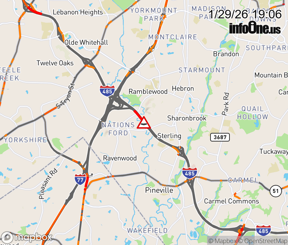 The right shoulder is closed prior to Exit 67(I-77). Updated: Thu 1/29/26 7:06 PM EST ![]() Updated: Thu 1/29/26 7:06 PM EST |