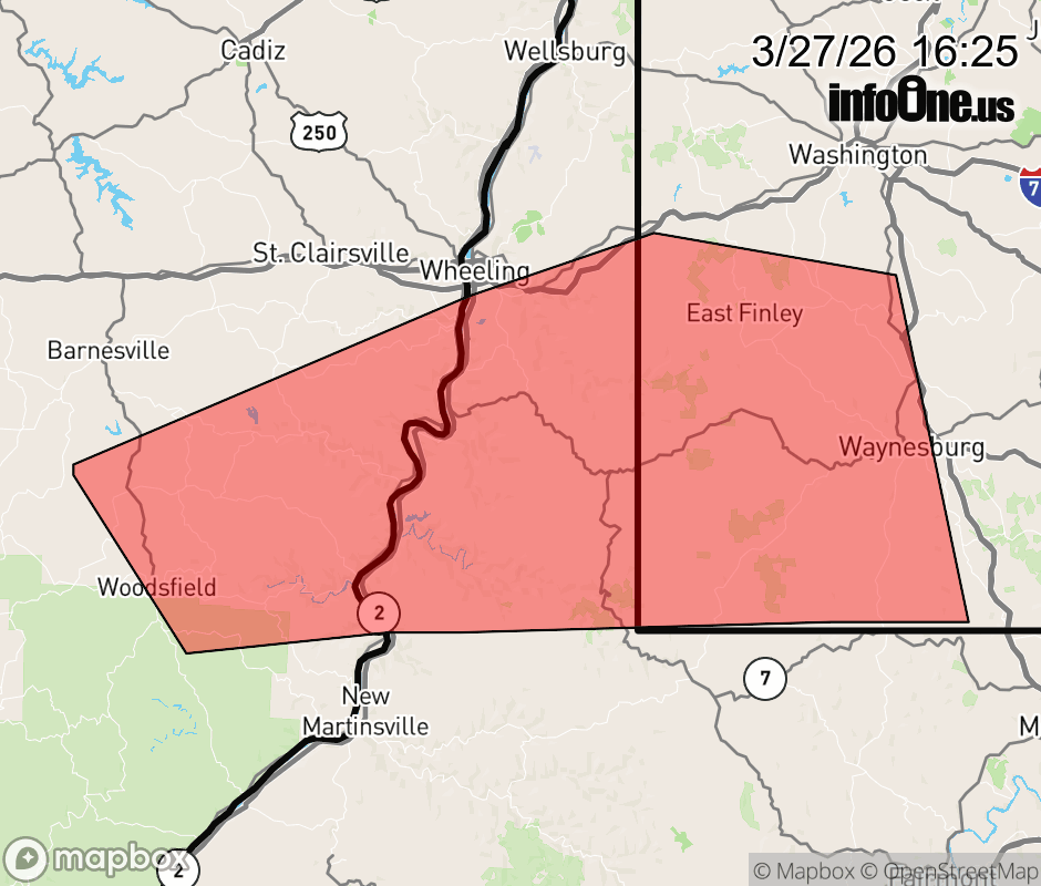 Canceled 3/27/26 4:30 PM Flood Warning issued March 27 at 4:23PM EDT until March 27 at 4:30PM EDT by NWS Pittsburgh PA The Flood Warning will expire at 430 PM EDT this afternoon for portions of east central Ohio, southwest Pennsylvania, and the northern panhandle of West Virginia. Flood waters have or will continue to recede as the flooding threat dissipates. Please continue to heed remaining road closures. ![]() |