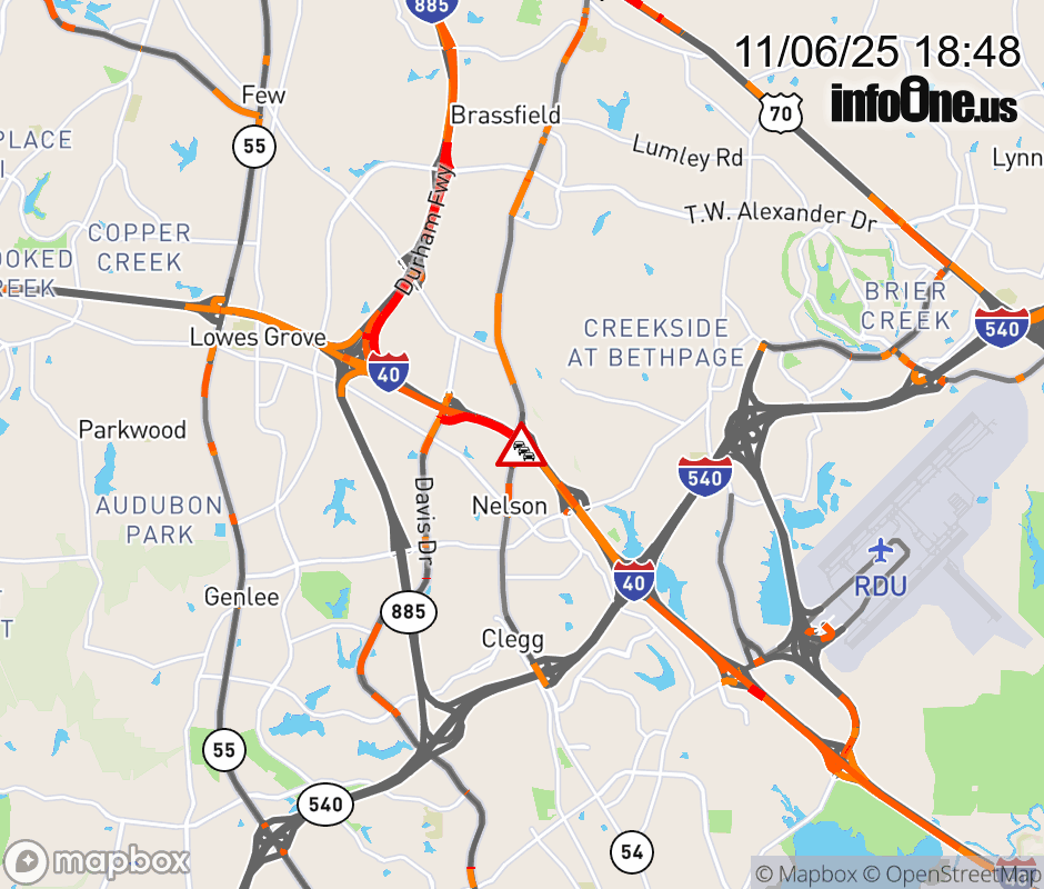 The right lane is closed Near Exit 281 (S Miami Blvd). Updated: Thu 11/6/25 6:48 PM EST ![]() Updated: Thu 11/6/25 6:48 PM EST |