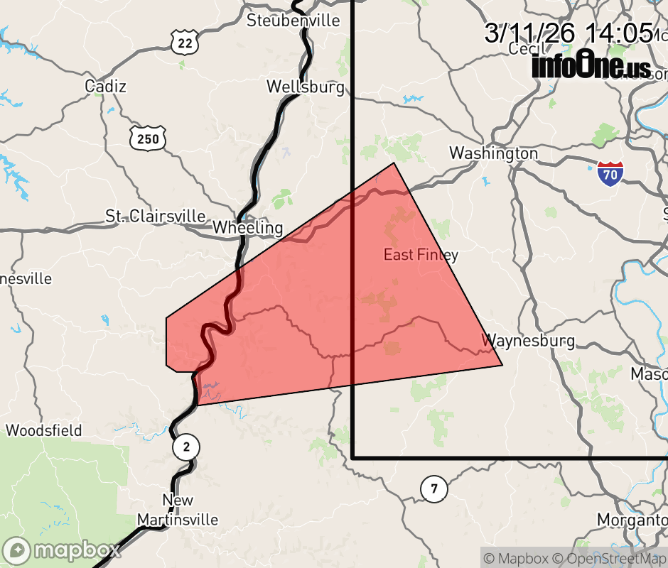 Canceled 3/11/26 2:14 PM Severe Thunderstorm Warning issued March 11 at 2:03PM EDT until March 11 at 2:30PM EDT by NWS Pittsburgh PA At 203 PM EDT, a severe thunderstorm was located over Moundsville, moving east at 60 mph. HAZARD...60 mph wind gusts and small hail. SOURCE...Radar indicated. IMPACT...Expect damage to roofs, siding, and trees. Locations impacted include... Moundsville, Bethlehem, Triadelphia, Valley Grove, Shadyside, McMechen, Powhatan Point, Glen Dale, Cameron, Benwood, Rogersville, West Finley, Claysville, West Alexander, Nineveh, Lone Oak, Beelers Station and Dallas. ![]() |