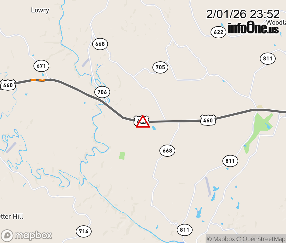 On US-460 West in the County of Bedford, in the vicinity of Pisgah Rd; Rt. 708N/S (Bedford County), motorists can expect delays due to a vehicle crash. Lane closures exist. ![]() |