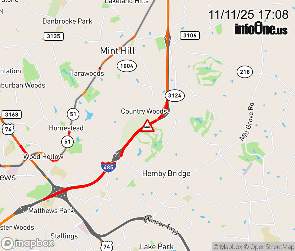 Canceled 11/11/25 5:46 PM Location: I-485O at MM 47, NC Vehicle Crash.