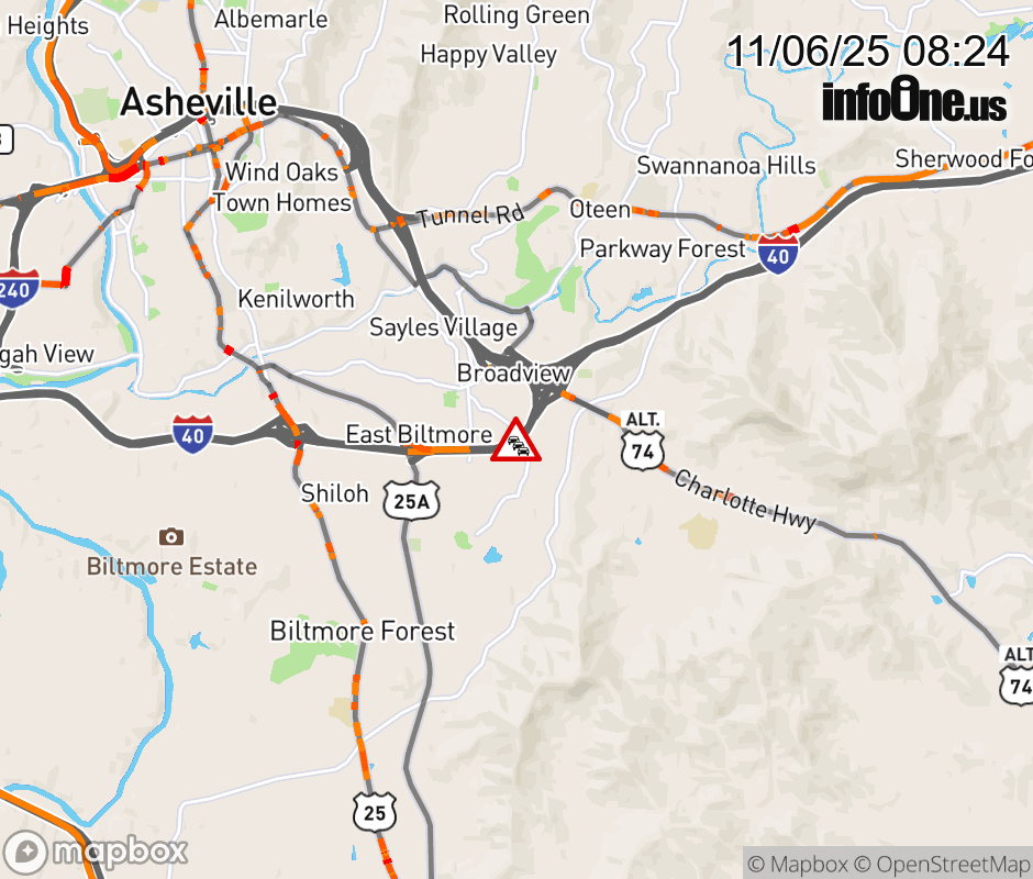 There is a reported incident after Exit 53, US74 Alt, (Charlotte Highway). ![]() |