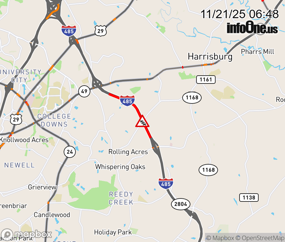 The right shoulder is closed before Exit 36 (Rocky River Rd). Updated: Fri 11/21/25 6:48 AM EST ![]() Updated: Fri 11/21/25 6:48 AM EST |