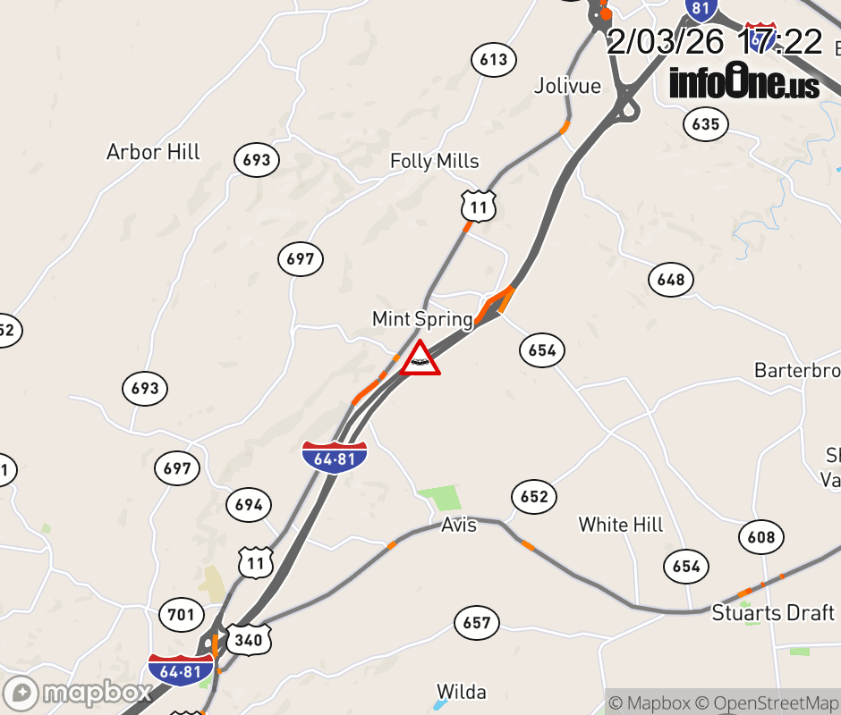 On I-81 South at mile marker 217 in the County of Augusta, motorists can expect delays due to a vehicle crash. Updated: Tue 2/3/26 5:22 PM EST ![]() Updated: Tue 2/3/26 5:22 PM EST |