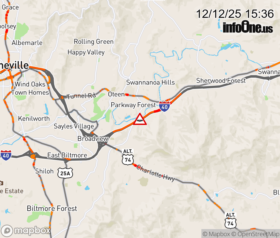 The left lane is closed 1 mile west of Exit 55, Porters Cove Road. Updated: Fri 12/12/25 3:36 PM EST ![]() Updated: Fri 12/12/25 3:36 PM EST |