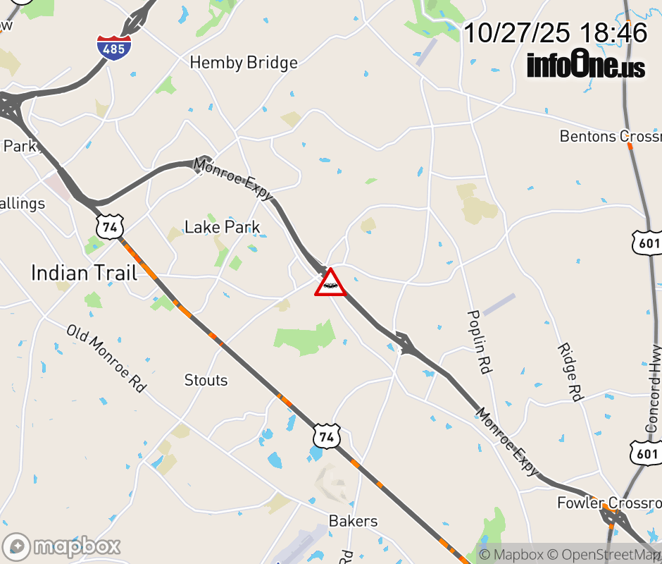 The on ramp is closed past Exit 259 (Unionville-Indian Trail Road) Updated: Mon 10/27/25 6:46 PM EDT ![]() Updated: Mon 10/27/25 6:46 PM EDT |