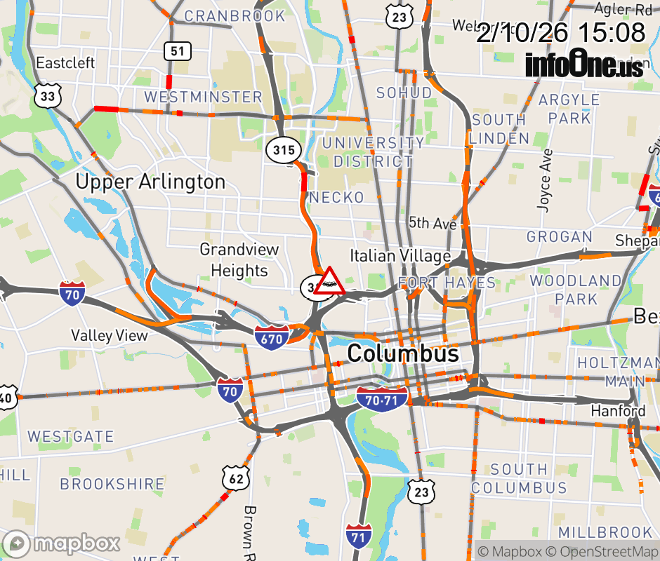 The left shoulder is blocked on Ramp SR-315 South to I-670 East, due to a crash. Updated: Tue 2/10/26 3:08 PM EST ![]() Updated: Tue 2/10/26 3:08 PM EST |