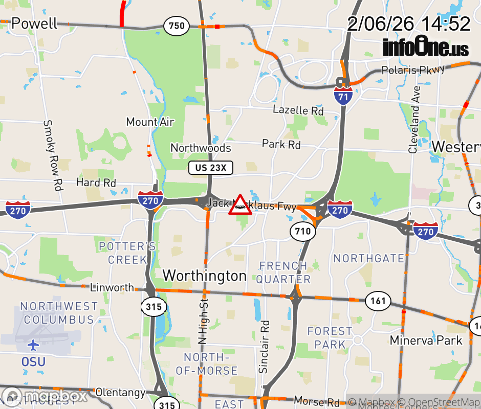 The right lane is blocked on I-270 East beyond US-23, due to a crash. ![]() |