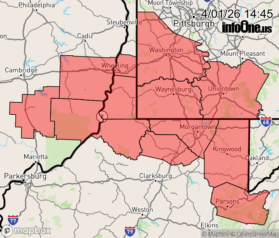 Canceled 4/1/26 5:45 PM Severe Thunderstorm Watch issued April 1 at 2:44PM EDT until April 1 at 8:00PM EDT by NWS Pittsburgh PA THE NATIONAL WEATHER SERVICE HAS ISSUED SEVERE THUNDERSTORM WATCH 85 IN EFFECT UNTIL 8 PM EDT THIS EVENING FOR THE FOLLOWING AREAS IN OHIO THIS WATCH INCLUDES 3 COUNTIES IN EAST CENTRAL OHIO BELMONT MONROE NOBLE IN PENNSYLVANIA THIS WATCH INCLUDES 3 COUNTIES IN SOUTHWEST PENNSYLVANIA FAYETTE GREENE WASHINGTON IN WEST VIRGINIA THIS WATCH INCLUDES 7 COUNTIES IN NORTHEAST WEST VIRGINIA PRESTON TUCKER IN NORTHERN WEST VIRGINIA MARION MONONGALIA WETZEL IN THE NORTHERN PANHANDLE OF WEST VIRGINIA MARSHALL OHIO THIS INCLUDES THE CITIES OF CALDWELL, CANONSBURG, CONNELLSVILLE, DAVIS, FAIRMONT, KINGWOOD, MARTINS FERRY, MASONTOWN, MORGANTOWN, MOUNDSVILLE, NEW MARTINSVILLE, PARSONS, ST. CLAIRSVILLE, TERRA ALTA, THOMAS, UNIONTOWN, WASHINGTON, WAYNESBURG, WHEELING, AND WOODSFIELD. ![]() |