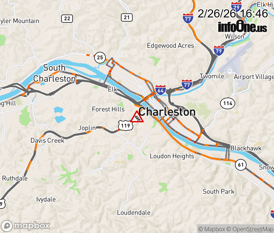 Congestion-Delay on US-119 (Corridor G South) & I-64 Interchange (Oakwood Exit) in Charleston. ![]() |