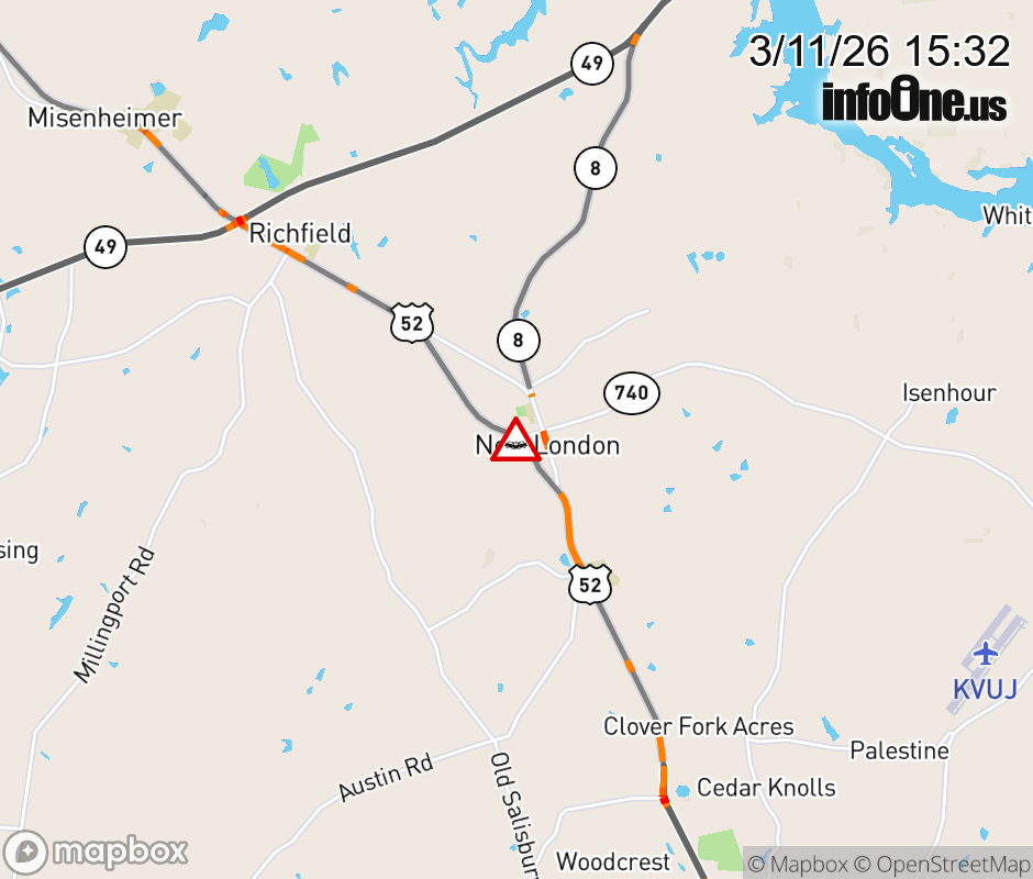 Road is closed due to a vehicle accident at the intersection of Hwy 52, Steakhouse Rd, and Hwy 740 in New London ![]() |