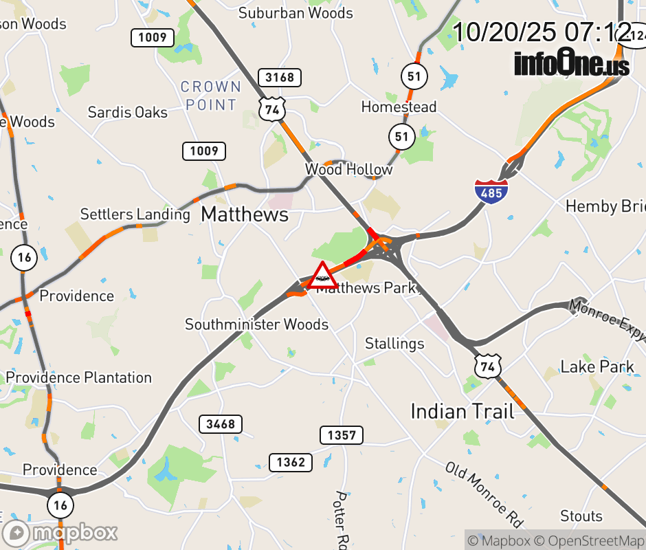 Canceled 10/20/25 7:16 AM Location: I-485I at MM 52, NC Vehicle Crash.