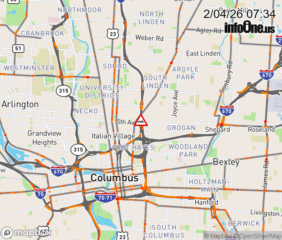 The right lane is blocked on I-71 North beyond I-670 West, due to a disabled vehicle. Updated: Wed 2/4/26 7:34 AM EST ![]() Updated: Wed 2/4/26 7:34 AM EST |