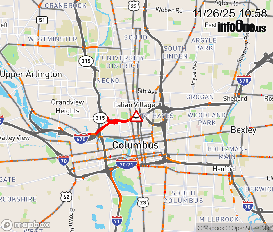 The right lane is blocked on I-670 East at US-23/Third St/Fourth St, due to a crash. Updated: Wed 11/26/25 10:58 AM EST ![]() Updated: Wed 11/26/25 10:58 AM EST |