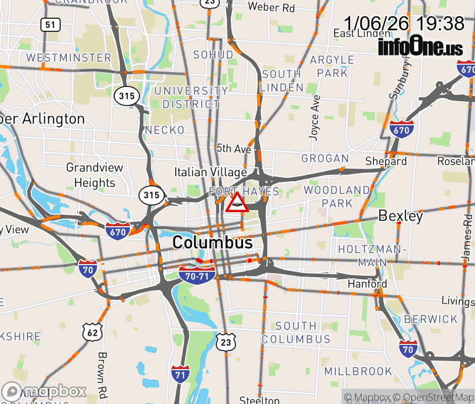 Expect lane closures on Ramp I-71 North to I-670 West, due to a crash. Updated: Tue 1/6/26 7:38 PM EST ![]() Updated: Tue 1/6/26 7:38 PM EST |