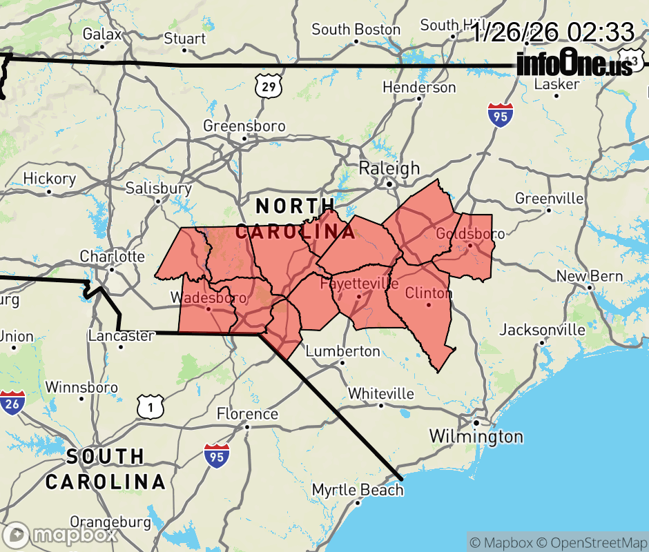 Canceled 1/26/26 2:14 PM Cold Weather Advisory issued January 26 at 2:31AM EST until January 27 at 10:00AM EST by NWS Raleigh NC * WHAT... Very cold wind chills in the single digits above zero. * WHERE... The southern Piedmont, Sandhills, and southern and central Coastal Plain in central North Carolina. * WHEN... From 9 PM this evening to 10 AM EST Tuesday. * IMPACTS... Very cold temperatures can lead to hypothermia with prolonged exposure. ![]() |