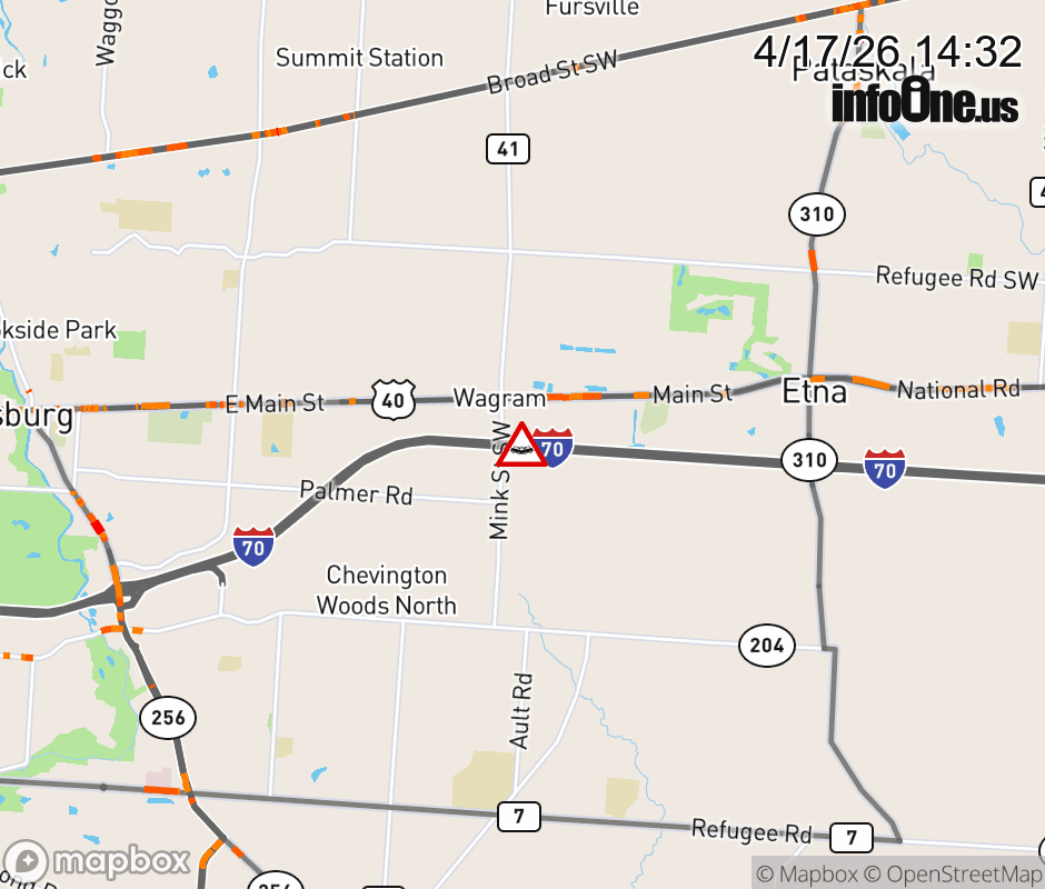 The right shoulder is blocked on I-70 West beyond SR-310/Etna/Pataskala, due to a crash. ![]() |