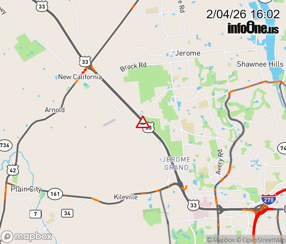 Expect lane closures on US-33 East beyond US-42, due to a crash. ![]() |