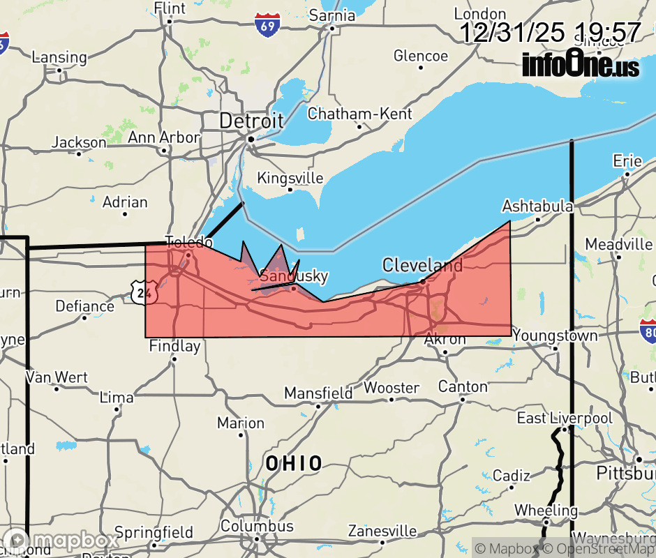 Canceled 12/31/25 8:45 PM Special Weather Statement issued December 31 at 7:56PM EST by NWS Cleveland OH At 753 PM EST, radar indicated heavy snow showers along a line extending from near Euclid to 8 miles east of Kelleys Island to near Swanton, moving generally southward at 25 mph. HAZARDS INCLUDE... Wind gusts up to 40 mph, near-zero visibility, and up to 2 inches of quick snow accumulation. Locations impacted include... Cleveland, Toledo, Lorain, Elyria, Bowling Green, Sandusky, Painesville, Norwalk, Fremont, Willowick, Fostoria, Ravenna, Vermilion, Port Clinton, Chardon, Swanton, Kelleys Island, Put-In-Bay, Parma, and Lakewood. Use extra caution if you must travel. Rapid changes in visibility and potentially slick roads may lead to accidents. ![]() |