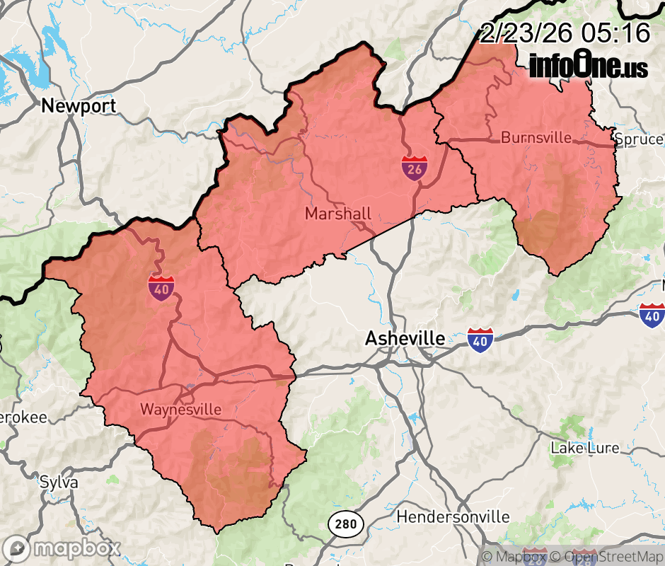 Canceled 2/23/26 12:54 PM Winter Weather Advisory issued February 23 at 5:15AM EST until February 24 at 12:00AM EST by NWS Greenville-Spartanburg SC * WHAT... Snow. Additional snow accumulations up to two inches. Winds gusting as high as 50 mph. * WHERE... Haywood, Madison, and Yancey Counties. * WHEN... Until midnight EST tonight. * IMPACTS... The snowfall will create slippery and snow covered roadways. The hazardous conditions could impact the Monday morning and evening commutes. Gusty winds could bring down tree branches. * ADDITIONAL DETAILS... Winds gusting as high as 50 mph could result in areas of blowing snow and very low visibility in the high elevations today. ![]() |