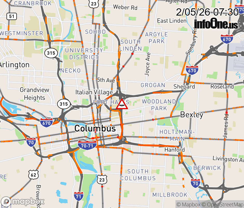 The left lane is blocked on I-670 East beyond I-71 South, due to a crash. ![]() |