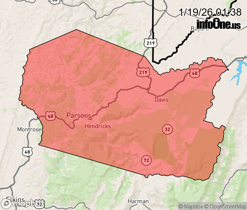 Canceled 1/19/26 12:54 PM Extreme Cold Warning issued January 19 at 1:37AM EST until January 20 at 12:00PM EST by NWS Pittsburgh PA * WHAT... For the Wind Advisory, west winds 15 to 25 mph with gusts up to 55 mph expected. For the Extreme Cold Warning, dangerously cold wind chills as low as 25 below zero expected. * WHERE... Eastern Tucker County. * WHEN... For the Wind Advisory, from 8 AM this morning to midnight EST tonight. For the Extreme Cold Warning, from 9 PM this evening to noon EST Tuesday. * IMPACTS... Gusty winds will blow around unsecured objects. Tree limbs could be blown down and a few power outages may result. The dangerously cold wind chills as low as 25 below zero could cause frostbite on exposed skin in as little as 30 minutes. ![]() |