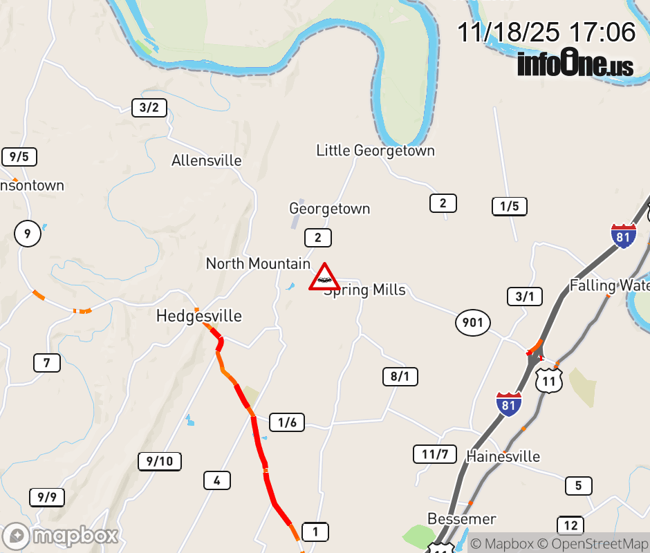 Vehicle Crash on WV-901 (2200 Hammonds Mill Road). ![]() |