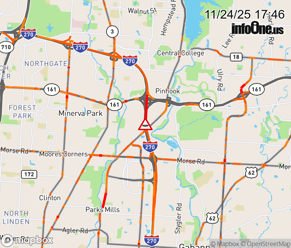 The left shoulder is blocked on I-270 North beyond Morse Rd, due to a crash. Updated: Mon 11/24/25 5:46 PM EST ![]() Updated: Mon 11/24/25 5:46 PM EST |