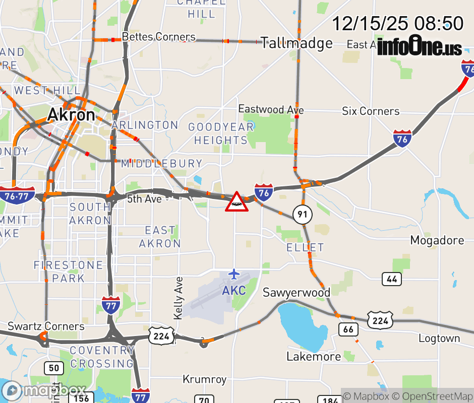 The right lane is blocked on I-76 East at SR-18/E Market St, due to a crash. ![]() |