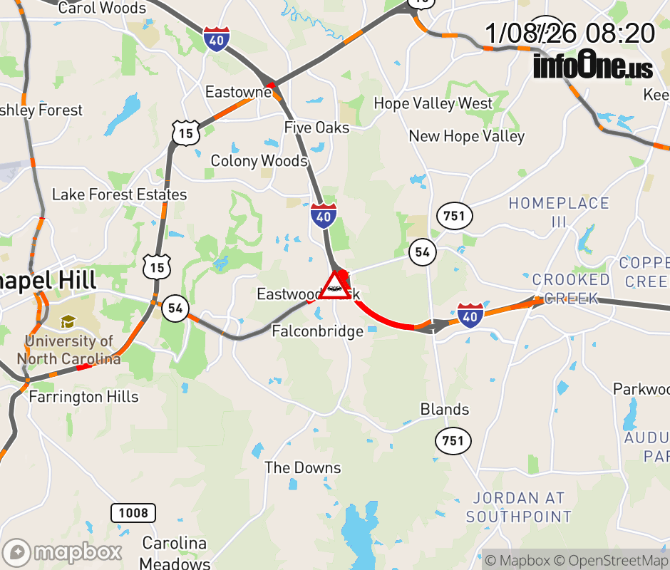 The left lane is closed at I-40. Updated: Thu 1/8/26 8:20 AM EST ![]() Updated: Thu 1/8/26 8:20 AM EST |