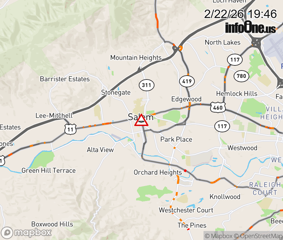On VA-311 North in the County of Craig, in the vicinity of Coleys Clf; Rt. 619E/W (Craig County), motorists can expect delays due to a vehicle crash. Lane closures exist. ![]() |