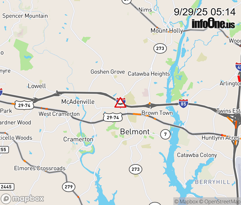 The left lane is closed at Exit 26 (NC 7/Belmont Mt Holly Rd). ![]() |