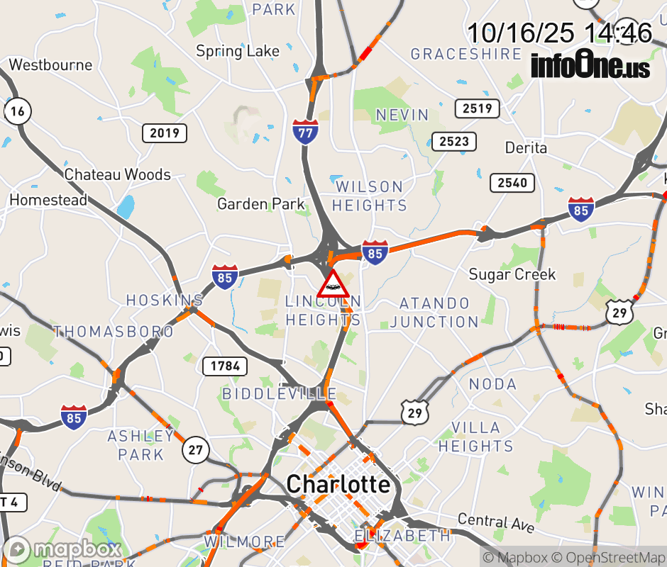 Crash on I-77 North Bound near exit 13 A to I-85 North Bound. The right lane is blocked. ![]() |