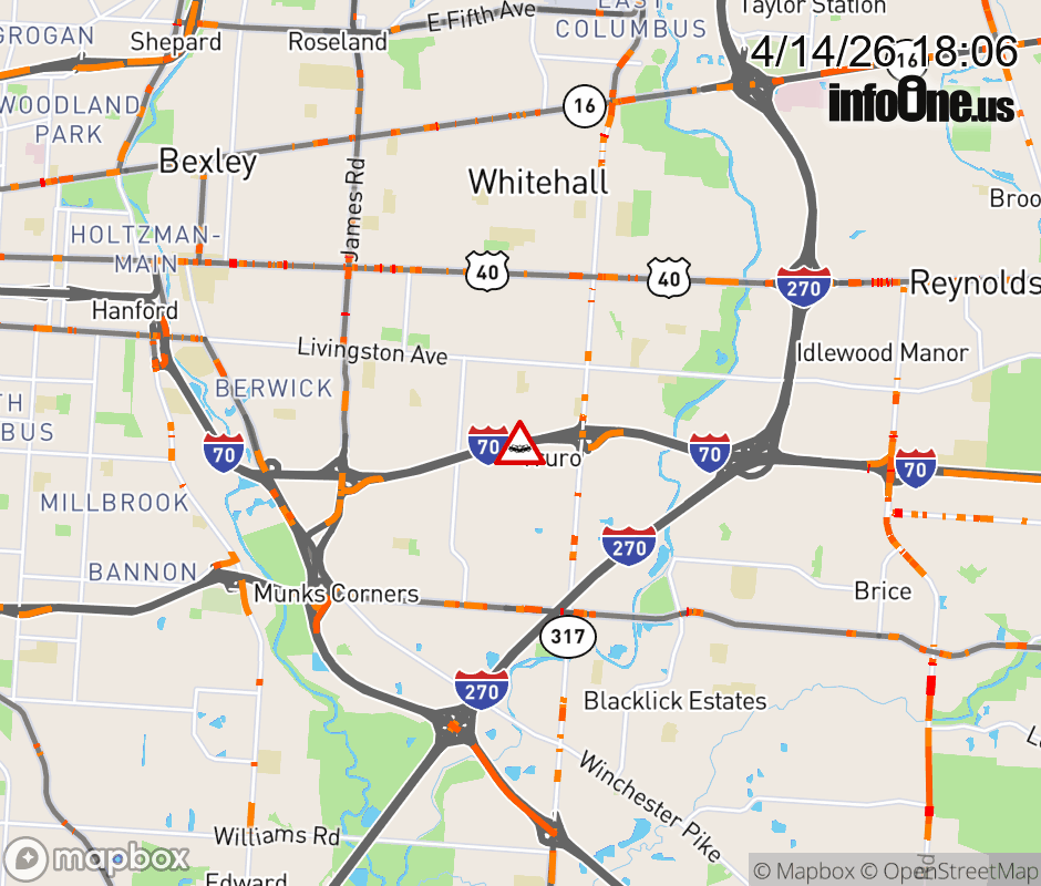 The right lane is blocked on I-70 East beyond James Rd, due to a crash. ![]() |