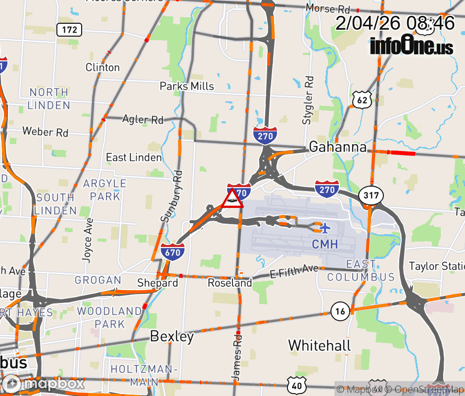 The right shoulder is blocked on I-670/US-62 West beyond I-270, due to a crash. ![]() |