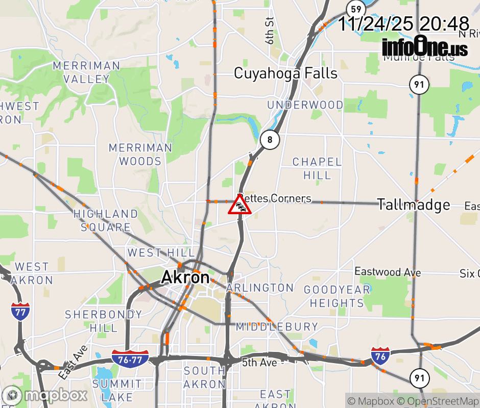 The right lane is blocked on SR-8 South/SR-59 West beyond SR-261/Tallmadge Ave, due to repairs/maintenance. ![]() |
