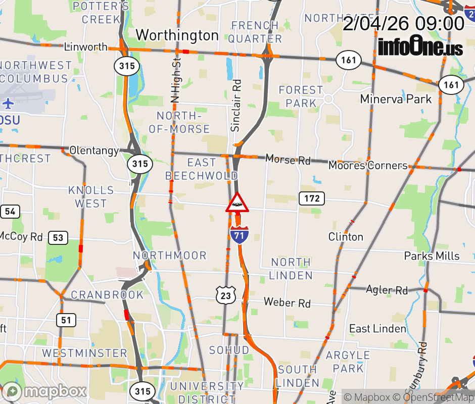 The right shoulder is blocked on I-71 North beyond E Cooke Rd, due to a crash. Updated: Wed 2/4/26 9:00 AM EST ![]() Updated: Wed 2/4/26 9:00 AM EST |